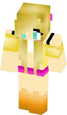 This minecraft skin features a playful version of Chica, the chicken animatronic from the popular Five Nights at Freddy's game series. Enjoy this cute and colorful character in your Minecraft adventures!